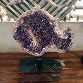 Piedra amatista en pedestal metalico