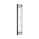 Arbotante de luz led para exterior, hecho a base de un bloque de vidrio transparente empotrado en un marco de metal oscuro