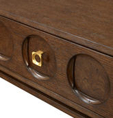 Buro de roble americano que combina elegancia y funcionalidad. Destaca por sus detalles circulares en el cajón que le dan un toque contemporáneo, mientras que la agarradera de latón añade un acabado sofisticado y duradero. Perfecto para espacios que buscan muebles de calidad con carácter. Su construcción robusta garantiza años de uso, convirtiéndolo en una inversión inteligente para tu hogar u oficina.