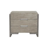 Buro de cama de enchapado de madera dos tonos, con tres gabetas