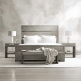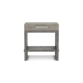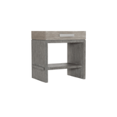 Buro de cama de enchapado de madera dos tonos, con puerto usb en su parte trasera.