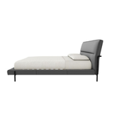 Cama king size tapizada en tela color gris oscuro.