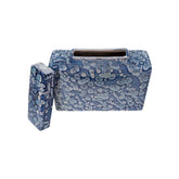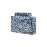 Cerámica rectangular azul esmaltado con detalles en blanco y gris