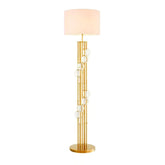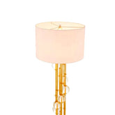 Lampara de piso con formas organicas y base metalica dorada