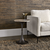 Mesa de servicio de base latonada con cubierta de marmol