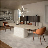 Mesa rectangular, cubierta y pedestal en acabado ceramico km21 colosseo