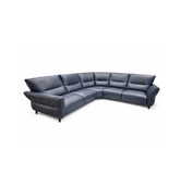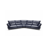 Seccional modular tapizado piel azul marino, de 5 piezas, brazo izquierdo electrico, armless electrico, esquina, armless y brazo derecho electrico