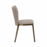 Silla con base y patas en acero inoxidable acabado dorado. Cepillado. Tapizada en tela color beige.