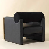Sillón de acento tapizado en combinación de cuero sintético y tela negra, con brazos reforzados en madera clara que aportan contraste y personalidad. Su respaldo cómodo y estructura firme lo hacen ideal para salas, oficinas o rincones de lectura, ofreciendo un lugar práctico para descansar mientras agregas estilo y carácter a tu espacio.