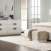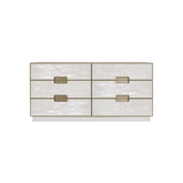 Tocador elaborado en madera sólida de maple con herrajes en tono dorado tipo ranura y cara de piedra selenita